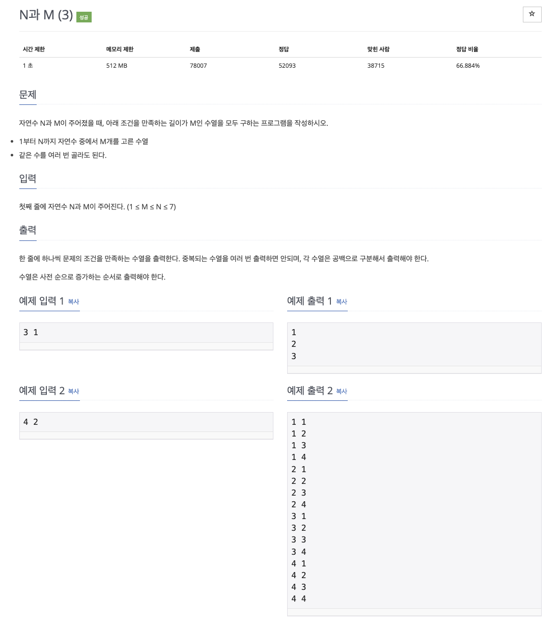 #15652 백준